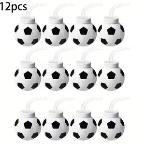 12pcs Soccer Ball Cups with Straws And Lids, 10Oz Plastic Reusable Soccer Cups Bulk for Soccer Birthday Theme Party Supplies (12)